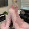 Pink Halter Tulle Ruffles High Split Prom Party Dresses quantity