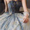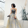 Stylish Tulle Sequins Long Prom Dress, A-Line Strapless Evening Party Dress
