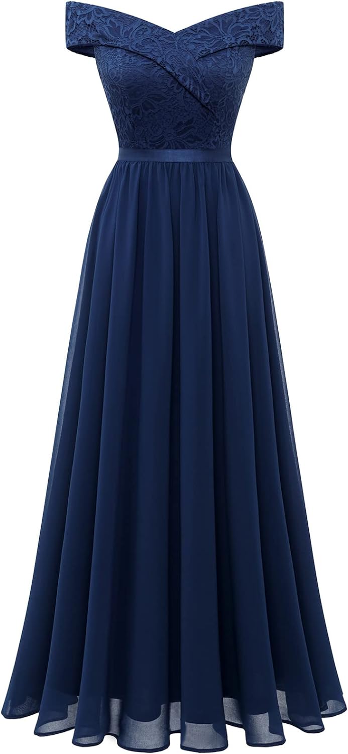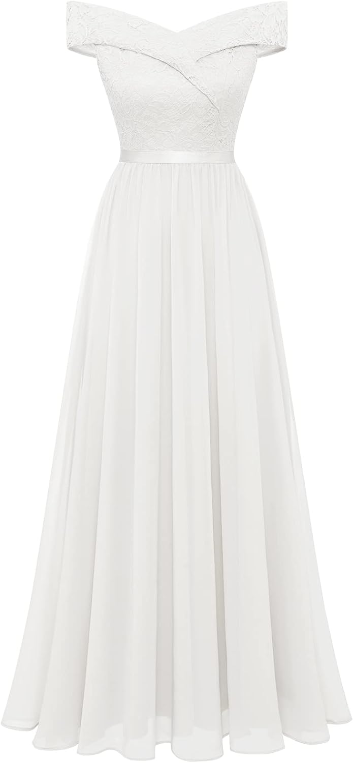 Women’s Lace Bridesmaid Dress A-Line Off Shoulder Floral Lace Chiffon Prom Dresses