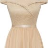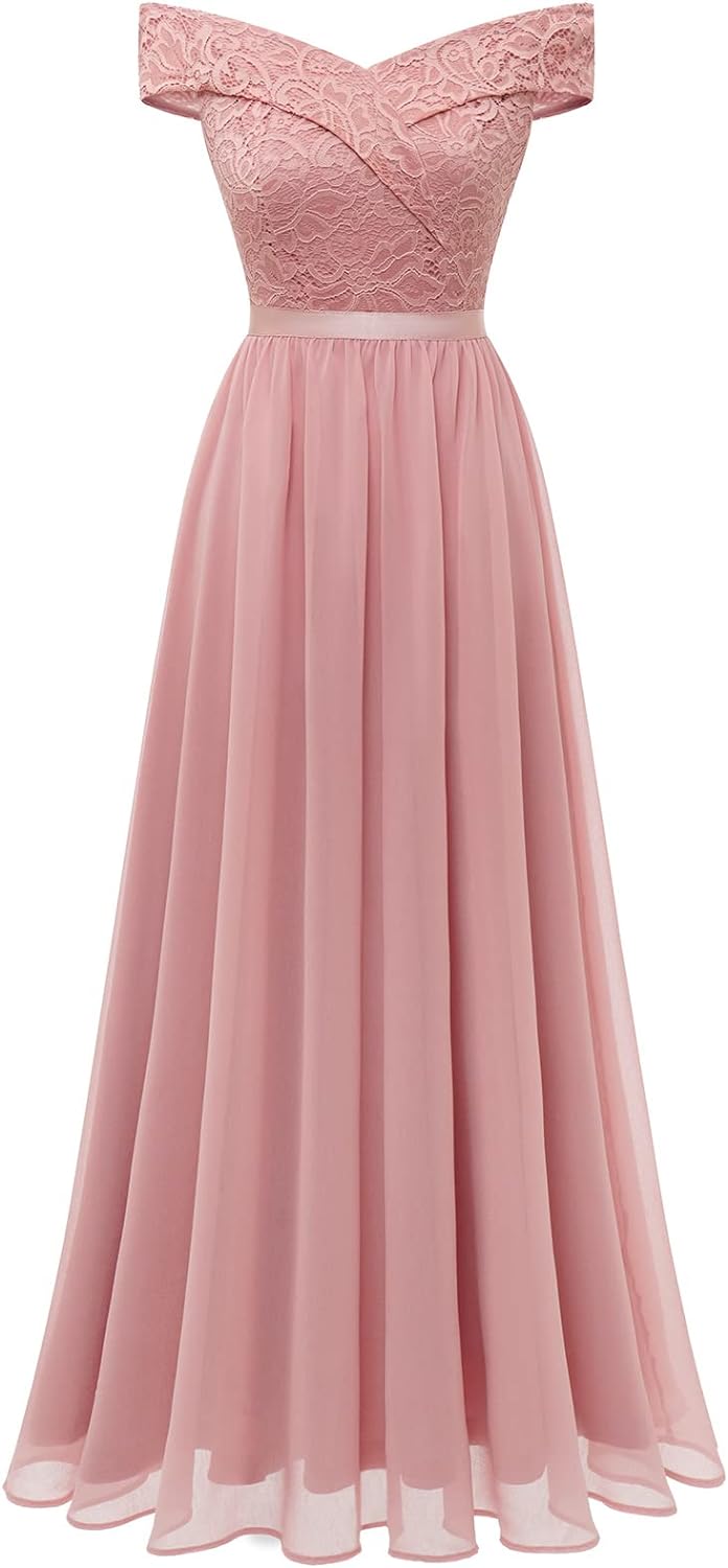 / Women’s Lace Bridesmaid Dress A-Line Off Shoulder Floral Lace Chiffon Prom Dresses